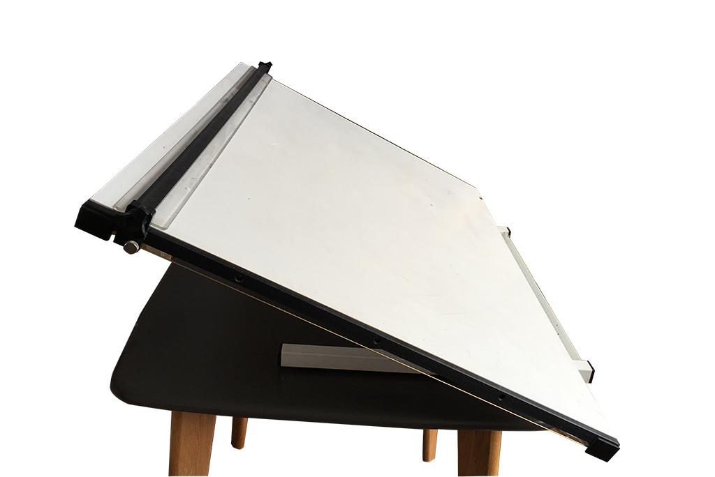 The drawing board provides a rigid support for your work but it must be angled because the angled surface will help to control the flow of ink. You will also have a direct and clear view of your work without leaning over the paper which would eventually lead to tension and discomfort in your shoulders and back.