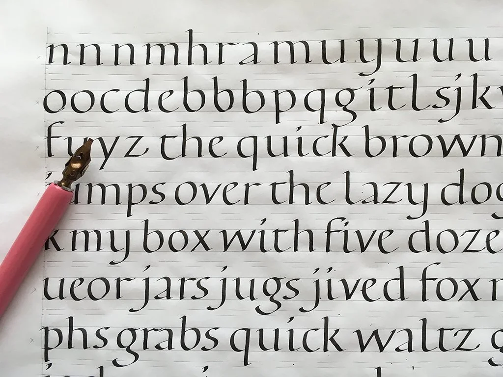 Writing with metal nibs and ink is more challenging than using the parallel pilot pen, but you will learn so much more about touch, rhythm and quality of line, which are so important to your understanding of calligraphy.