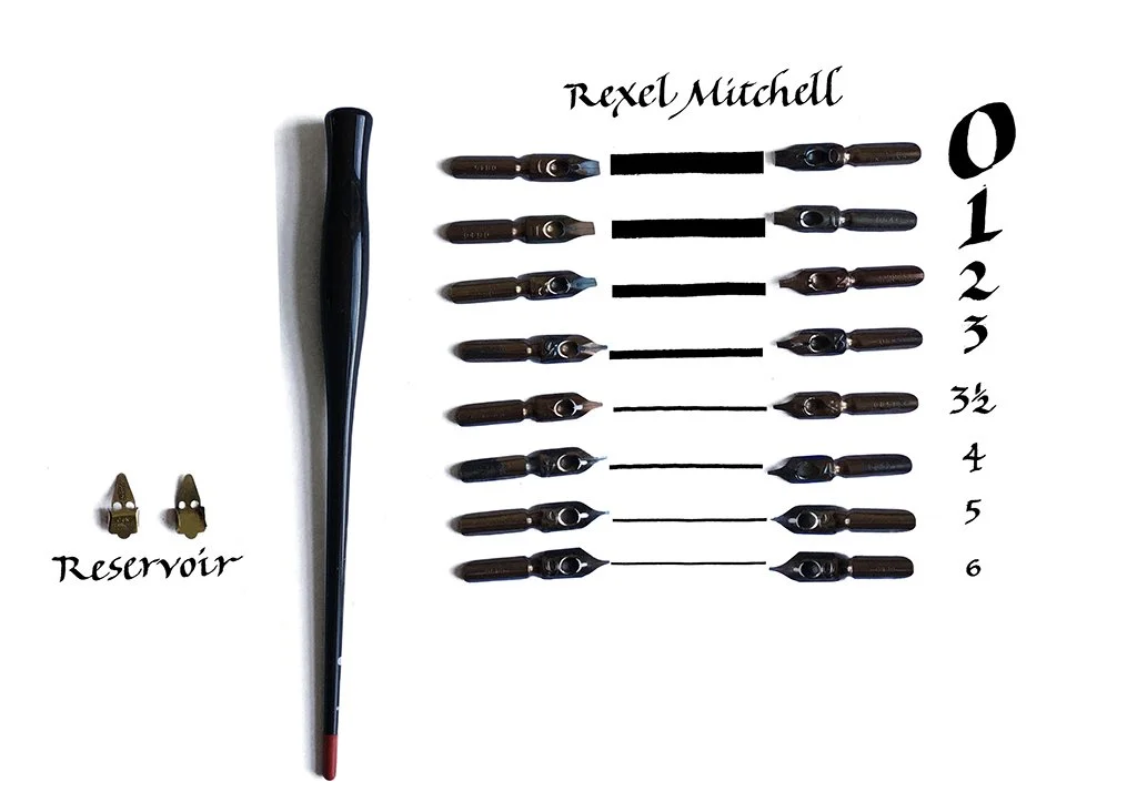 I bought my nibs when the company was known as Rexel Mitchell and you may come across packaging where they are described as Round Hand pens. They are all the same; they are square cut nibs for all types of edged pen calligraphy including Uncial, Carolingian, Gothic and Italic.